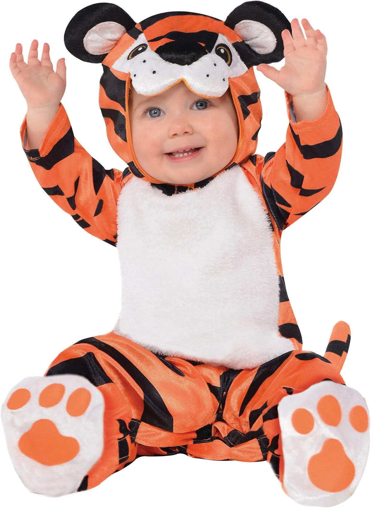 Süßer Overall mit Klettverschluss im Tigerlook mit Kapuze und Tatzen für die ganz Kleinen.