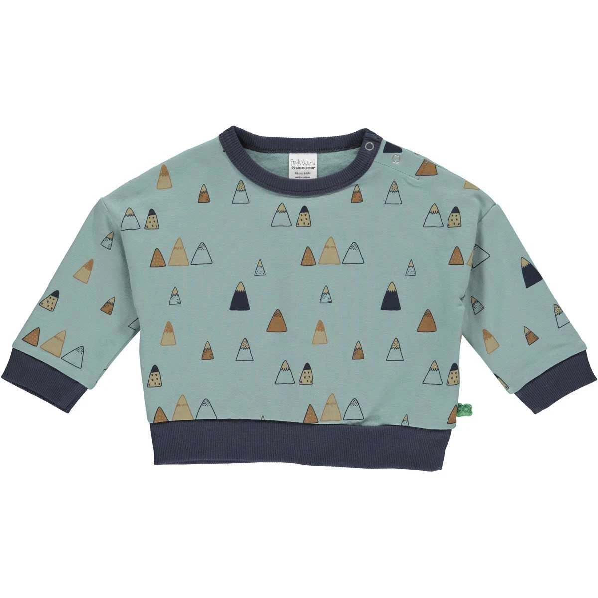 Das Sweatshirt ist aus reiner Bio-Baumwolle hergestellt. Es verfügt über einen Eisberg-Alloverprint und hat farblich abgesetzte Rippbündchen. Der Pullover hat einen lockeren Schnitt und ist innen warm angeraut. Die Druckknöpfe im Nackenbereich erleichtern das das An- und Ausziehen. Das Produkt ist durch Ecocert Greenlife Lic. No. 152033 GOTS Organic zertifiziert. Dies ist aktuell der höchste Standard für Bekleidung. Alle Produktionsprozesse wie Färben, Weben und Nähen werden unter strengsten Vorgaben mit Rücksicht auf die Umwelt durchgeführt. Auch die Arbeitsbedingungen werden während der einzelnen Produktionsschritte streng überwacht. Baumwolle 95%, Elasthan 5%