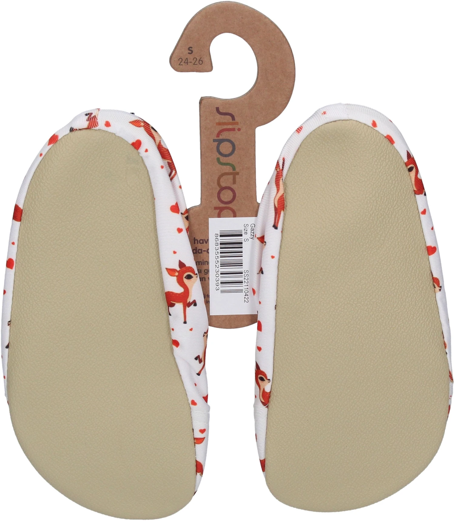 Die lustig bunten Kinderschuhe mit niedlichem Reh-Motiv von Slipstop sind für viele Unternehmungen geeignet. Die Slipper können als Badeschuhe, Hausschuhe oder auch als Schuhe für den Kindergarten, Hort und vieles mehr verwendet werden. Die Anti-Rutsch-Sohlen sorgen für gute Haltbarkeit auf vielen Untergründen. Durch den Gummizug kann Ihr Kind die Schuhe ganz leicht selbst an-und ausziehen. Überdies haben die Schuhe einen Lichtschutzfaktor 50 – so ist die Haut Ihres Kindes auch an den Füßen geschützt.