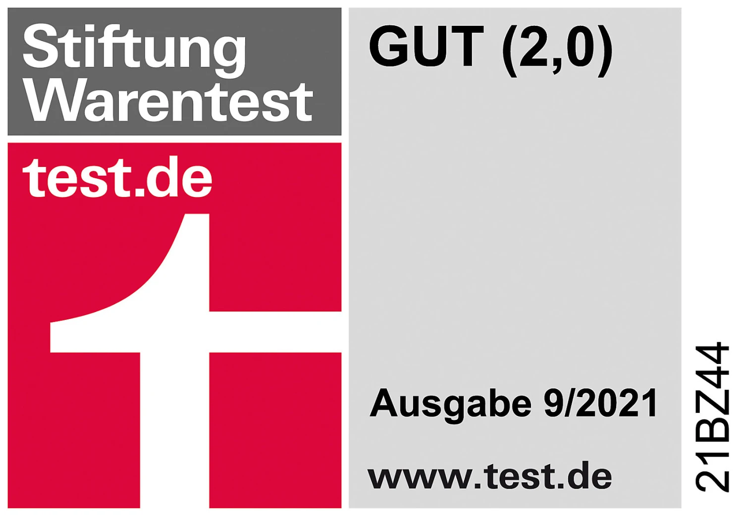 – Stiftung Warentest 09/2021: „gut“, Lizenznummer: 21BZ44