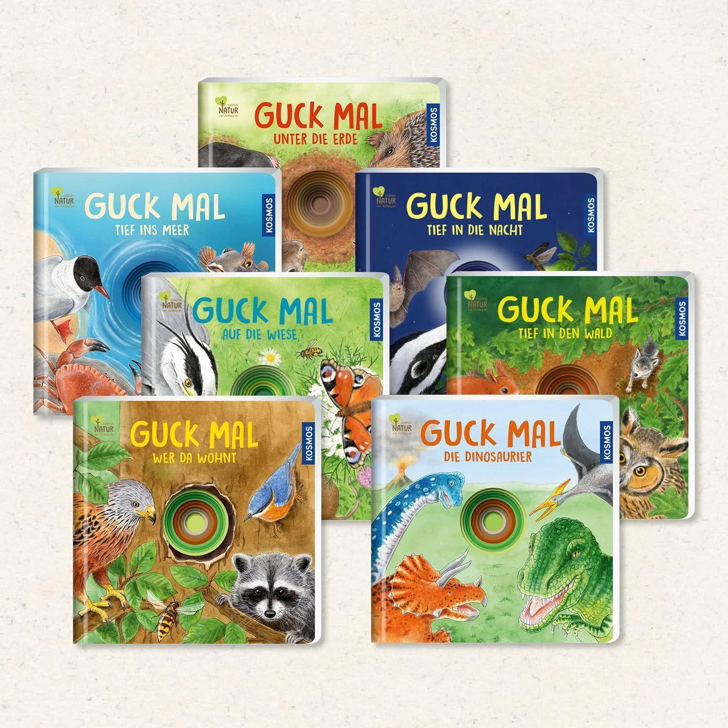 Nanu, Löcher im Buch? Ja, und zwar ganz besondere! Die Lochstanzungen lenken den Blick und die Fingerchen der Kinder in die geheimnisvolle Welt der Dinosaurier. Manche Dinos fliegen in der Luft, andere sind riesig oder durch Schild und Horn geschützt. Mit jedem Umblättern wird der Einblick in den Lebensraum der Tiere intensiver.Zauberhafte Zeichnungen von Lisa Apfelbacher zeigen die Tiere der Urzeit in typischen oder lustigen Situationen, die die Kinder begeistern und sich einprägen. In charmanten Reimen von Regina Schwarz werden große Räuber, kleine Flitzer und fürsorgliche Mamasaurier vorgestellt.KOSMOS Natur von Anfang an – konsequent nachhaltig.Produziert nach dem zertifizierten Cradle-to-Cradle-Prinzip. Eine Reise in die Urzeit auf den Spuren der Dinosaurier. Ein Lochbuch mit zauberhaften Zeichnungen und charmanten Reimen. Produziert nach dem zertifizierten Cradle-to-Cradle-Prinzip. Nanu, Löcher im Buch? Ja, und zwar ganz besondere! Die Lochstanzungen lenken den Blick und die Fingerchen der Kinder in die geheimnisvolle Welt der Dinosaurier. Manche Dinos fliegen in der Luft, andere sind riesig oder durch Schild und Horn geschützt. Mit jedem Umblättern wird der Einblick in den Lebensraum der Tiere intensiver.Zauberhafte Zeichnungen von Lisa Apfelbacher zeigen die Tiere der Urzeit in typischen oder lustigen Situationen, die die Kinder begeistern und sich einprägen. In charmanten Reimen von Regina Schwarz werden große Räuber, kleine Flitzer und fürsorgliche Mamasaurier vorgestellt.KOSMOS Natur von Anfang an – konsequent nachhaltig.Produziert nach dem zertifizierten Cradle-to-Cradle-Prinzip.Klappentext