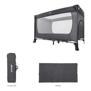 Mit dem hauck Dream’n Play Plus Reisebett finden Neugeborene und etwas größere Kinder überall schnell einen bequemen, sicheren Schlafplatz. Zusammengefaltet und in der mitgelieferten Tasche verstaut passt dieses Bett gut in jedes Reisegepäck. Lieferumfang: faltbares Kinderbett inklusive Faltmatratze und Tragetasche Material: Nylon Verwendung: als Zweit- oder Reisebett Belastbarkeit: bis 15 kg Auf einer Liegefläche von 120 x 60 Zentimeter erwartet kleine Kinder hier eine großzügige Schlafstelle. Eine Matratze bringt das Reisebett bereits mit. Diese lässt sich, wie das komplette Bett, schnell und einfach zusammenfalten. Mit einem robusten Rahmen aus Kunststoff-Stangen erreicht dieses Reisebett dabei trotzdem die notwendige Stabilität und Sicherheit. Transparente Nylonnetze an beiden Bettseiten lassen den Kleinen hier vollen Ausblick und erlauben gleichzeitig eine gute Luftzufuhr im Bett. An einem Ende öffnet sich außerdem ein Durchschlupf mit Reißverschluss, durch den größere Kinder das Bett auch selbstständig verlassen oder erreichen können. Mit einem geringen Gesamtgewicht von knapp über 9 Kilogramm hat Hersteller hauck bei diesem Reisebett vor allem an eine hohe Mobilität gedacht. Eine passende Transport-Tasche, die das komplette Bett in wenigen Minuten aufnimmt, gehört bereits zum Lieferumfang. Genauso eignet sich das Modell aber auch als Zweitbett für zu Hause, wenn häufiger Besuch mit Baby oder Kleinkind vorbeikommt.
