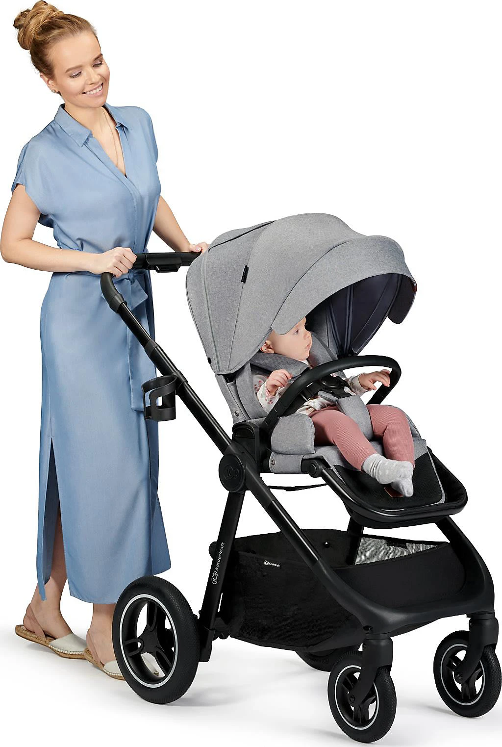 Der Wagen kann mit dem Kinderwagenaufsatz bereits ab der Geburt genutzt werden. Auf der atmungsaktiven, weichen Matratze hat es das Kind stets bequem. Später steigen Eltern auf den Sportwagenaufsatz um, der dank des Seitenschutzes vor unangenehmem Wind schützt. Der Sitz kann mit Ausrichtung nach vorn oder nach hinten auf das Gestell montiert werden, je nachdem, ob das Kind Blickkontakt zu den Eltern halten oder lieber seine Umgebung beobachten möchte. Mit nur wenigen Handgriffen lässt sich die Rückenlehne verstellen und in eine Liegeposition bringen, wenn das Kind unterwegs müde wird.