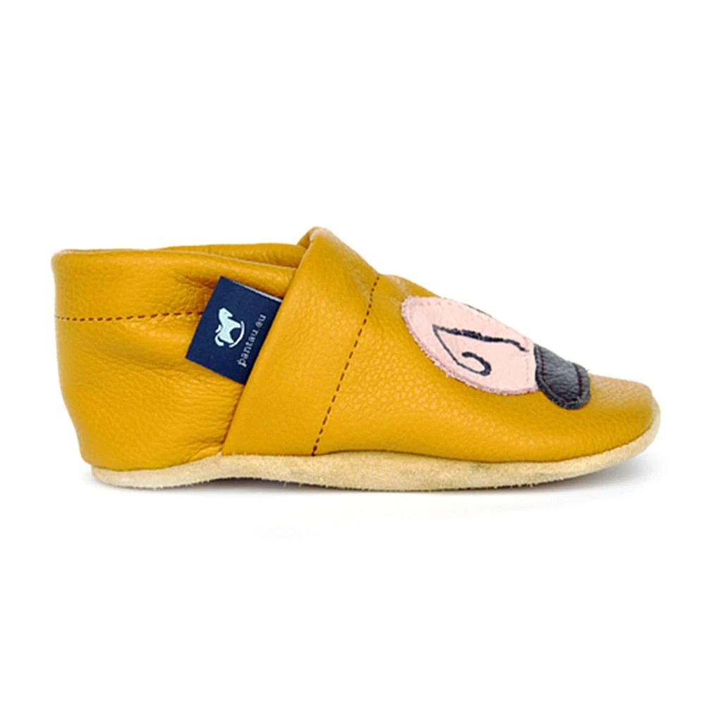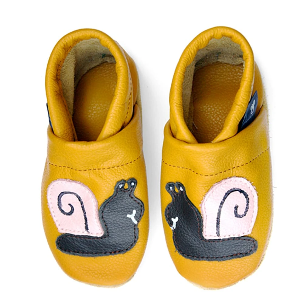 Krabbelschuhe / Lederpuschen Mit Schnecke In Gelb / Dunkelbraun