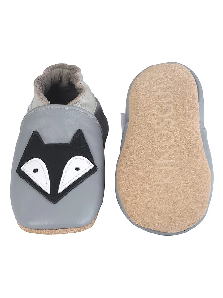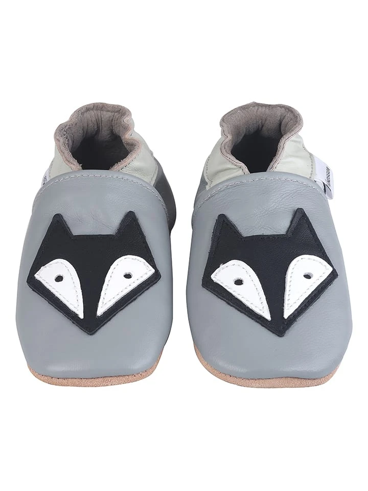 Leder-Krabbelschuhe „Fuchs“ In Grau