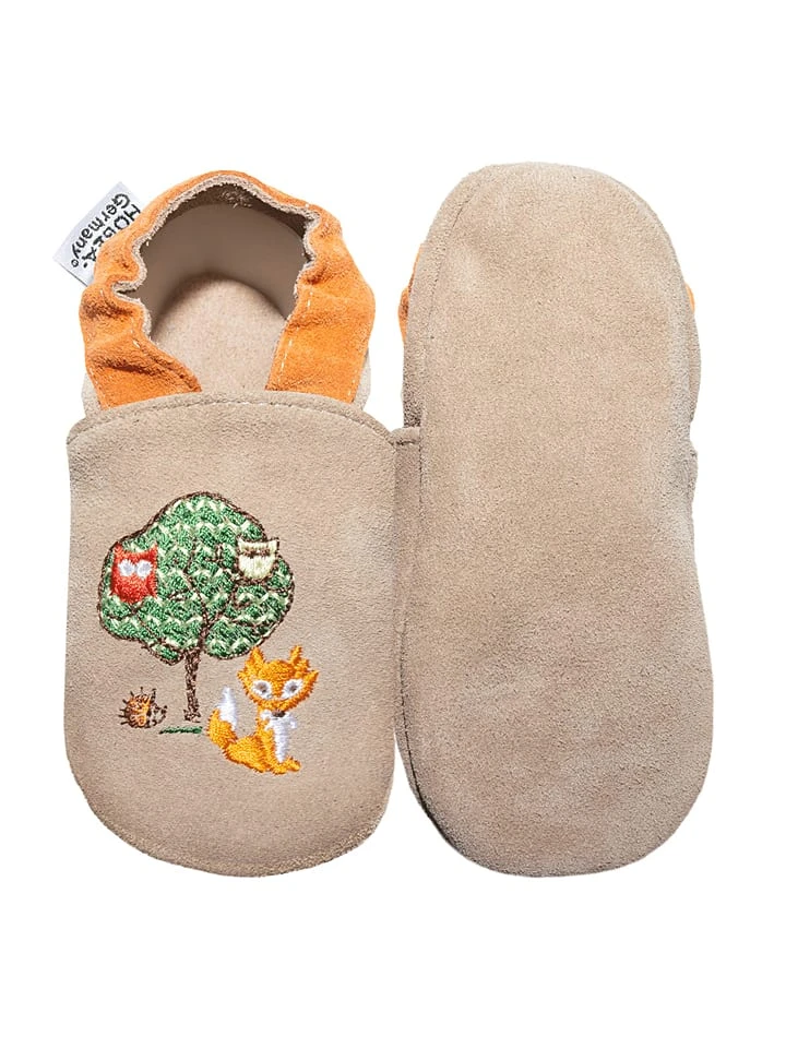 Leder-Krabbelschuhe „Waldtiere“ In Beige