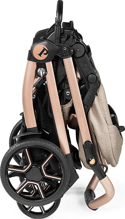 Durch das innovative Faltsystem können Eltern den Wagen im geschlossenen Zustand problemlos hinter sich herziehen. Die Räder können bei Bedarf ebenfalls abgenommen werden, um den Wagen im Auto zu verstauen. Praktisch: Der Wagen wird so zusammengefaltet, dass der Bezug stets innen und somit gut vor Schmutz geschützt ist. Der Bereich der Fußstütze ist mit Kunstleder überzogen, so dass diese Stelle schmutzabweisend ist und gut abgewischt werden kann.