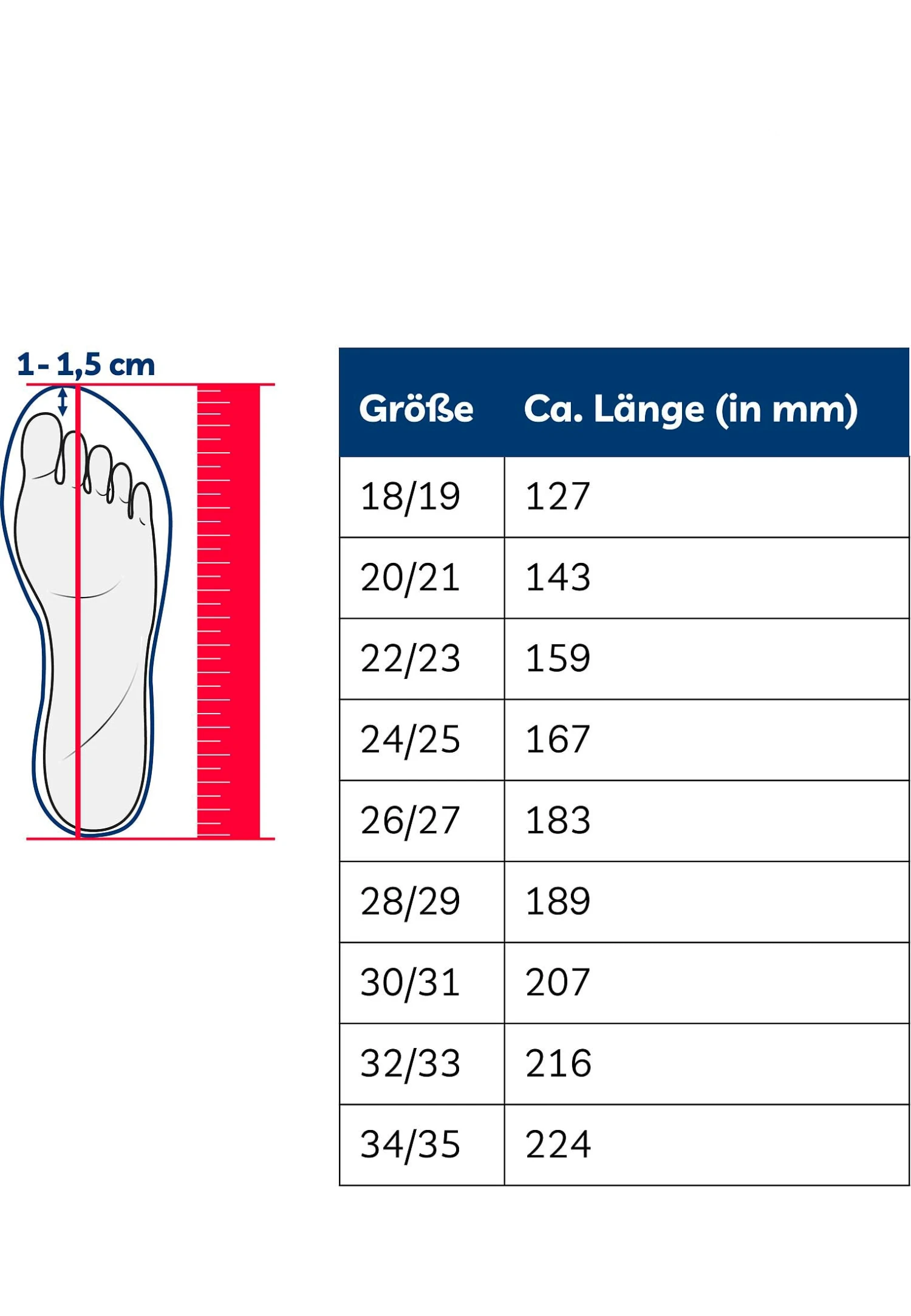 Egal ob am Strand oder im Schwimmbad, mit diesen praktischen Aqua-Schuhen ist ihr Kind bestens für die Badesaison gerüstet. Die Aquaslipper haben eine rutschhemmende TPR Sohle und schützen die Füße rundherum vor spitzen Steinen und heißem Sand. Der praktische Klettverschluss ermöglicht ein schnelles An- und Ausziehen der Bade-Sneaker und gibt zusätzlich einen guten Halt im Schuh. – Obermaterial: Textil – Futter & Decksohle: Textil – Laufsohle: Sonstiges Material