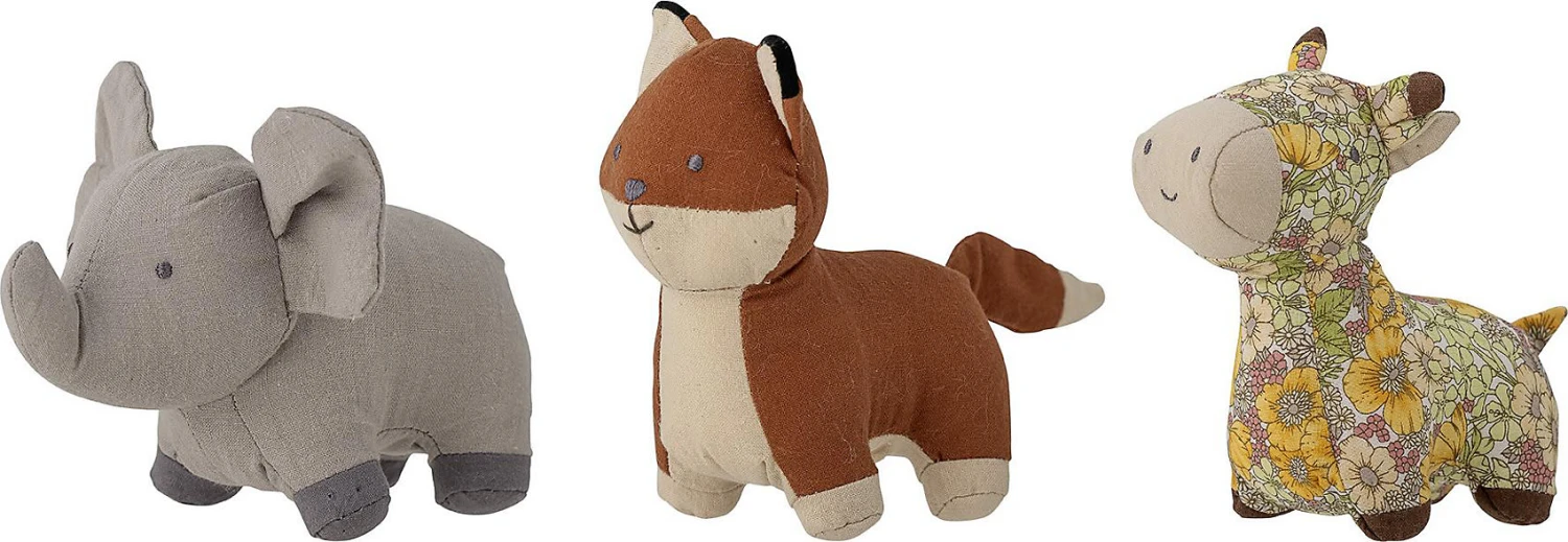 Diese drei weichen Kuscheltieren aus dem Hause Bloomingville MINI eignen sich klasse als Schmuse- und Spielpartner für Kinder! Der Fuchs, der Elefant und die Kuh sehen besonders niedlich aus und bieten Kindern viele Greifmöglichkeiten. Die Kuh sorgt zudem mit ihrem auffälligen Blümchendesign für Begeisterung!
