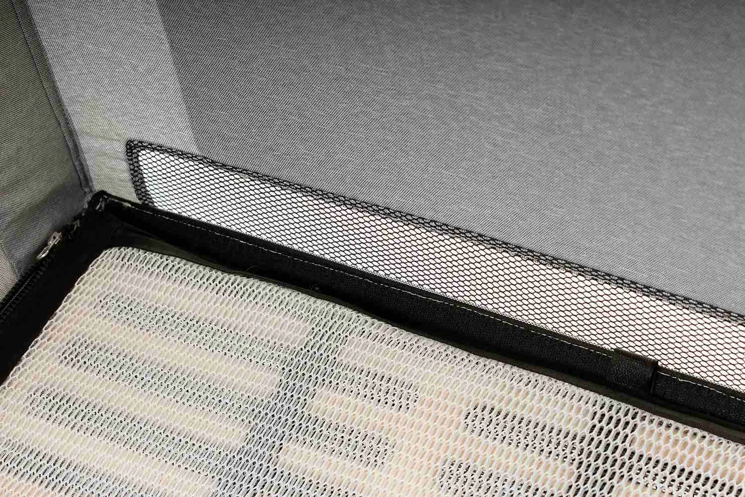 Das weltweit erste komplett durchlüftete Kinderreisebett ist das Fresh Air von Kid‘s Alm. Durch das patentierte und innovative Belüftungssystem im Kopf- und Fußbereich sowie den geöffneten Boden wird eine Rückatmung von Kohlendioxid, die oft für den gefürchteten plötzlichen Kindstot verantwortlich ist, vermieden. Auch Feuchtigkeit und Schimmelbildung haben dank der ständigen Luftzirkulation keine Chance, denn der hochwertige Lattenrost aus Holz ist mit Meshgewebe umhüllt. Diese Meshgewebematratze ist bereits so weich und komfortabel, dass eine weitere Matratze nicht zwingend erforderlich ist. Für die kleinen Abenteurer lässt sich das Schlupfloch am Fußende mit einem Reißverschluss öffnen und sie können selbstständig aus dem Bett klettern. Das innovative Fresh Air Kinderreisebett sorgt dank seiner vielen durchdachten Funktionen für erholsamen Schlaf auf Reisen.