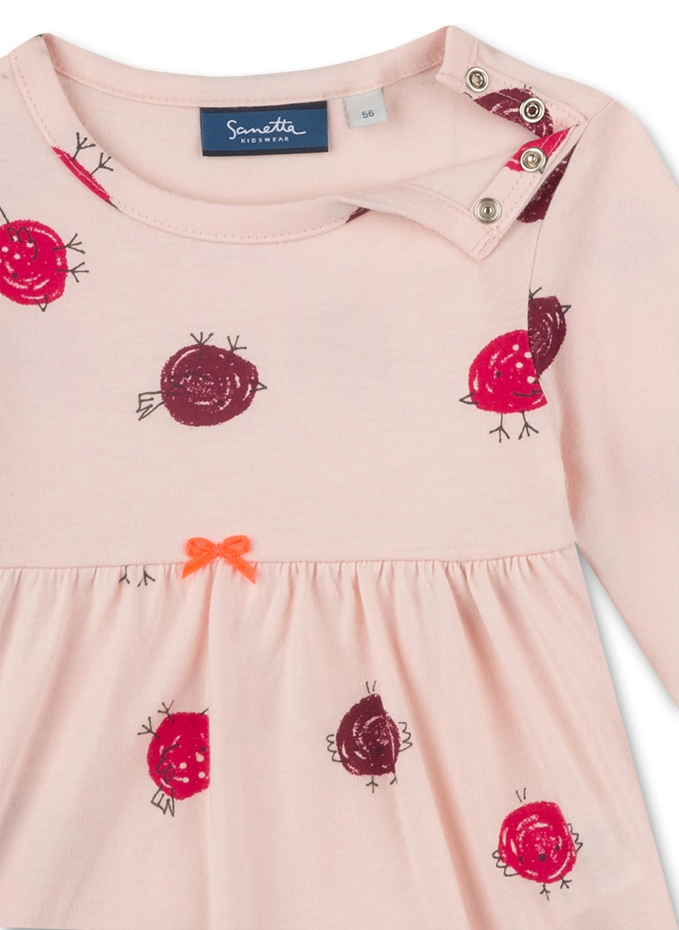 Süßes Kleidchen für kleine Mädchen in Rosa und einem wunderhübsch gestalteten Dots-Allover als kleine Vögelchen.