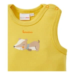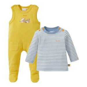 Das süße Strampler-Set von BORNINO wird dank tierischer Details und reiner Baumwolle zum absoluten Liebling kleiner Naturfreunde. Strampler-Set von BORNINO Shirt: Ringel-Look, „bornino“-Schriftzug, Rundhalsausschnitt, Druckknöpfe an den Schultern Strampler: unifarben, Dachs-Print mit „bornino“-Schriftzug, aufgesetzte Taschen, Druckknöpfe an den Schultern und im Schrittbereich, angesetzte Füßchen Interlock-Qualität reine Baumwolle Beide Set-Teile sind aus reiner Baumwolle in Interlock-Qualität gefertigt. So liegt das Strampler-Set immer angenehm weich auf der Haut. Shirt und Strampler sind mit Druckknöpfen auf den Schultern ausgestattet, die das An- und Ausziehen erleichtern. Der Strampler verfügt zusätzlich über Druckknöpfe im Schritt, die Mama und Papa beim Wickeln unterstützen. Angesetzte Füßchen sorgen dafür, dass nichts verrutscht. Hinweis Der Artikel kann nach dem Waschen etwas einlaufen, bestelle daher besser eine Größe größer.