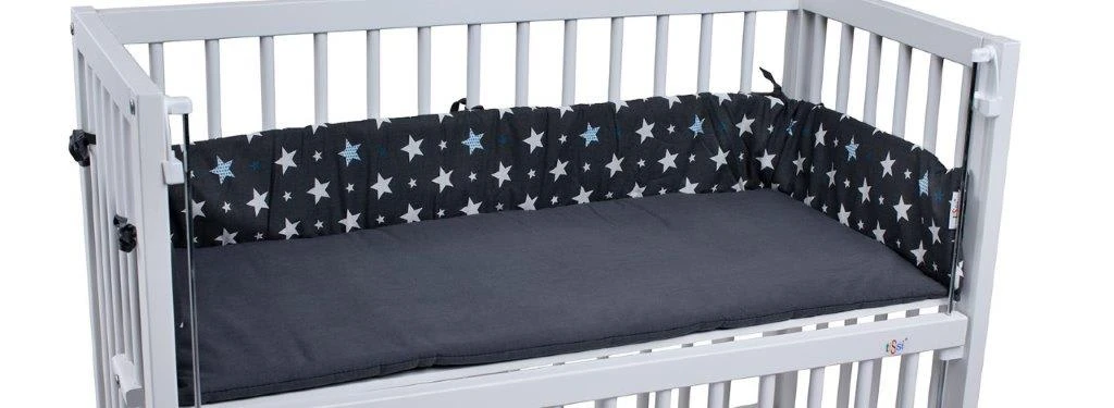 Die kuschelige Einlage aus natürlicher Baumwolle ist mit Polyester gefüllt und wird mit kleinen Bindebändchen an den Gitterstäben befestigt, damit es auch beim unruhigsten Schlaf. Sollte dabei mal ein kleines „Unglück“ passieren – kein Problem: Eventuelle Flecke verschwinden schnell wieder nach einem 30° C Waschgang in der Maschine.