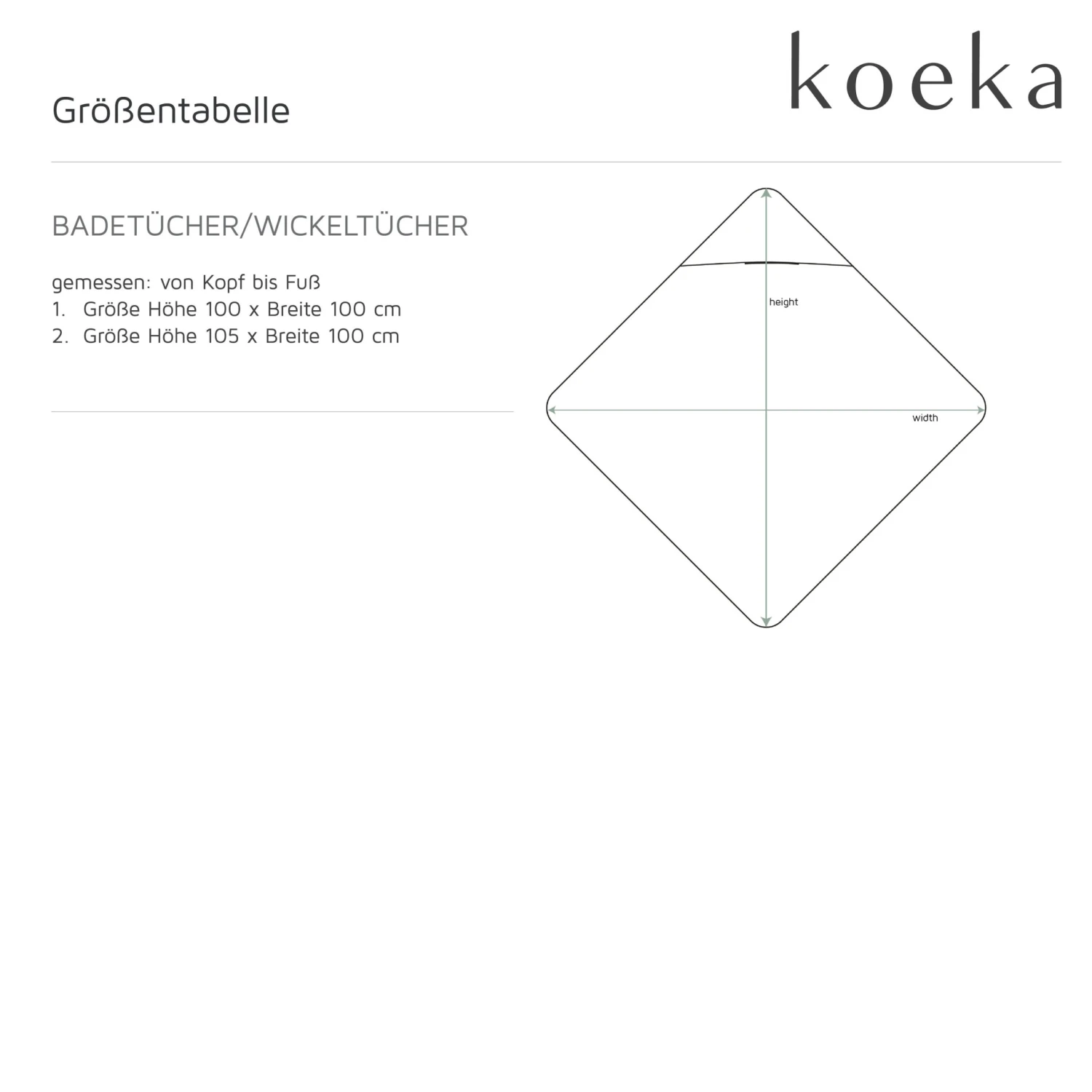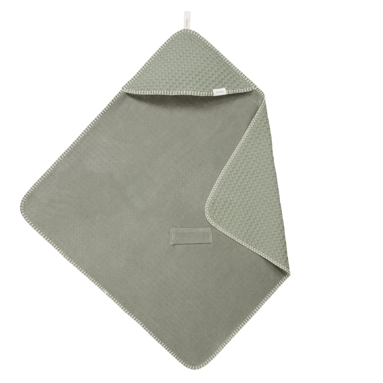 Das Koeka Umschlagtuch mit Kapuze ist mit Frottee gefüttert und kann zum EinWickeln deines Babys verwendet werden. Dieses Umschlagtuch hat eine Öffnung, so dass es auch mit den Gurten des Autositzes oder der Wippe verwendet werden kann. So ist deinem Baby zu Hause und unterwegs immer angenehm warm. Das Einwickeltuch ist auch beim Füttern praktisch. Mit der Aufhängeschlaufe ist das Handtuch im Bade- oder Kinderzimmer immer griffbereit. Du kannst das Einwickeltuch auch mit zum Kinderarzt nehmen; ideal, wenn man auf den Termin warten muss.